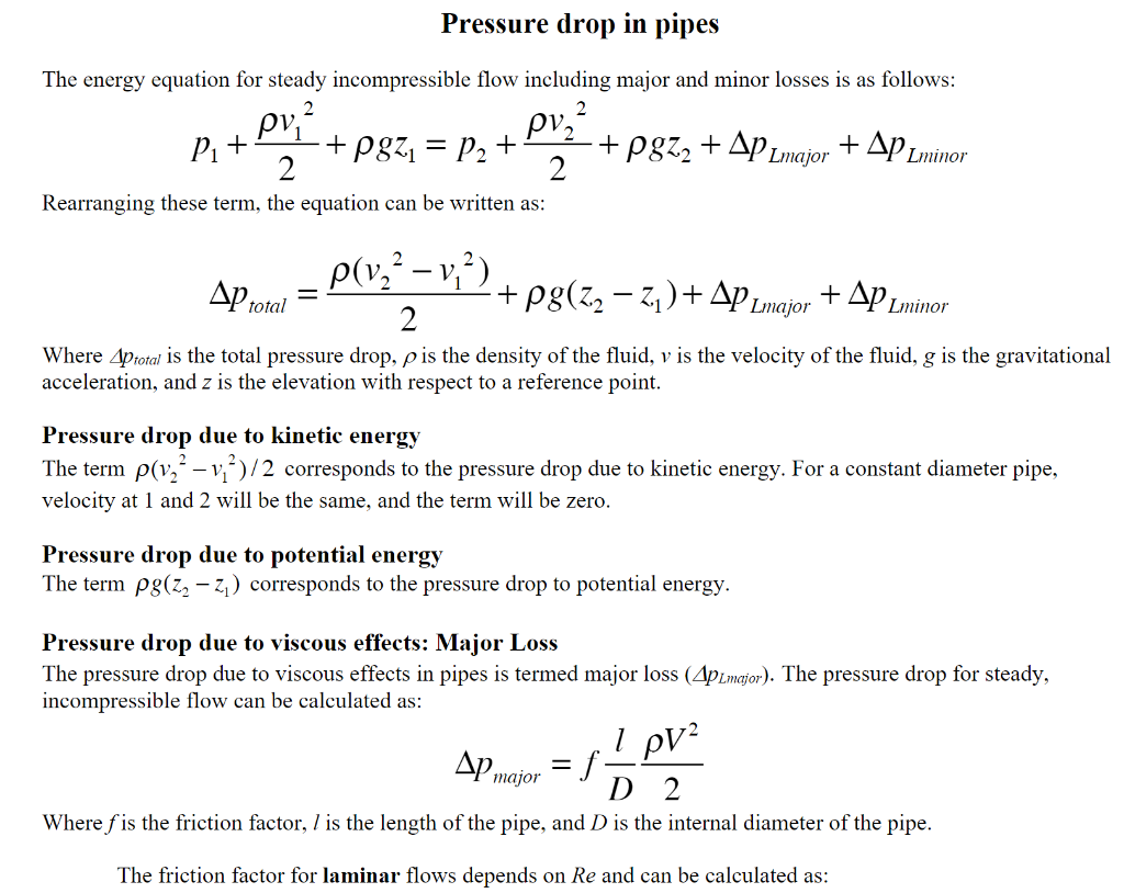 Solved Project Case Calculate the pressure drop in a